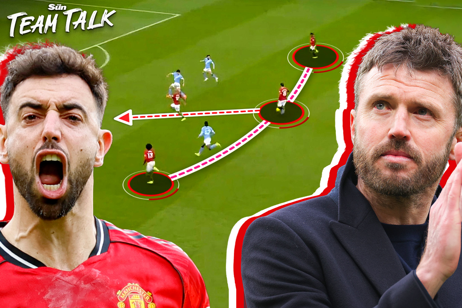 As United wind up like a Jack-in-the-box with City probing on an attack, Bruno getting the ball is the sign for his fellow forwards to sprint up-field.