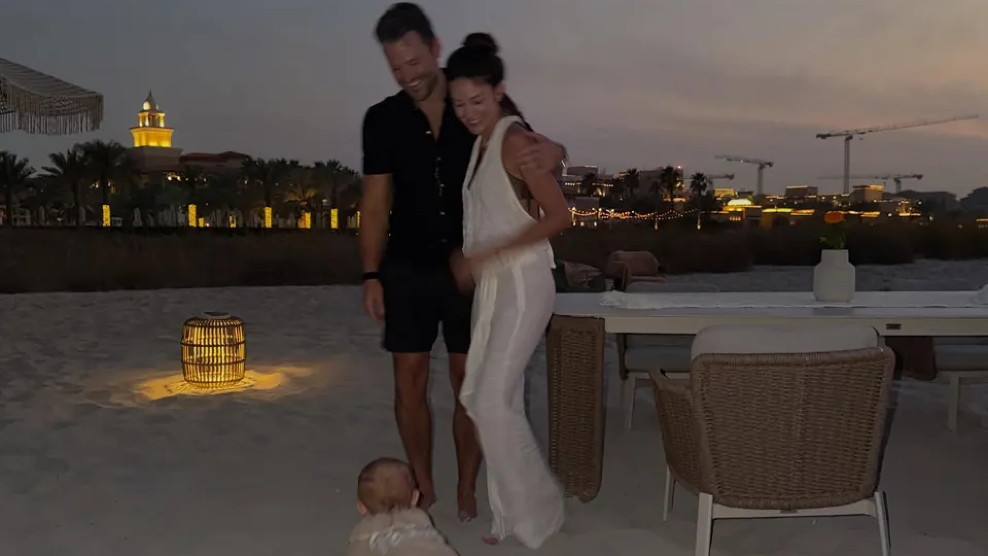 Mark, 39, shared a series of pictures on his feed, including one of Palma crawling in the sand as the pair look down at her in pride.