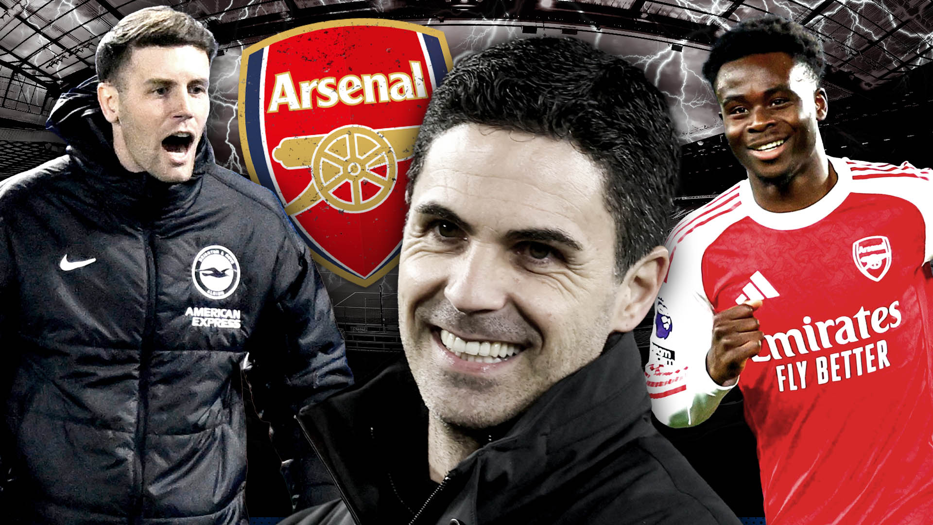 Bukayo Saka’s deflected strike in the ninth minute gave the Gunners the lead away at Brighton on a huge night in the title race.