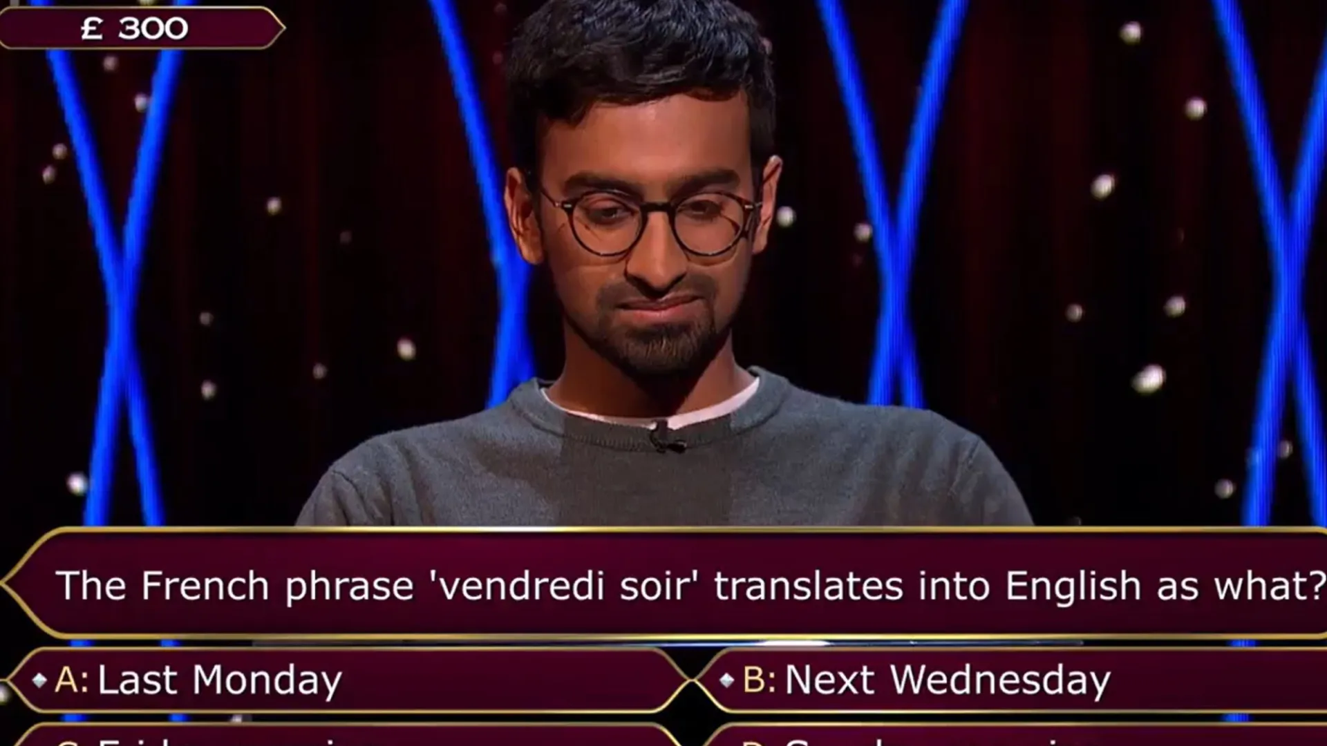 The contestant, Nabeel Nauzer from London, was asked to make a simple French to English translation which related to days of the week.