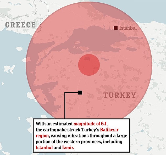 A 6.1-magnitude earthquake has struck western Turkey – bringing down buildings and sending residents racing for cover.