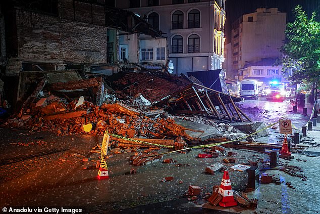 Interior Minister Ali Yerlikaya said the three buildings destroyed were unoccupied and damaged in the last quake. He confirmed a two-storey shop also collapsed in the area