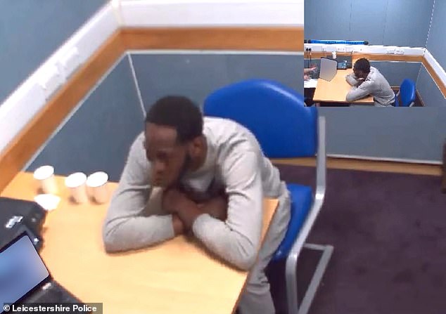 Michael Ahanonu told police he could not remember the killing. He was captured laughing during a police interview (pictured), telling officers: ”If I don’t laugh, I cry.’