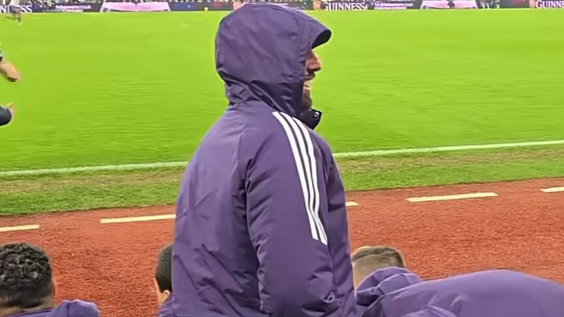 And he returned for the second half wearing a large purple coat to protect him from the cold.