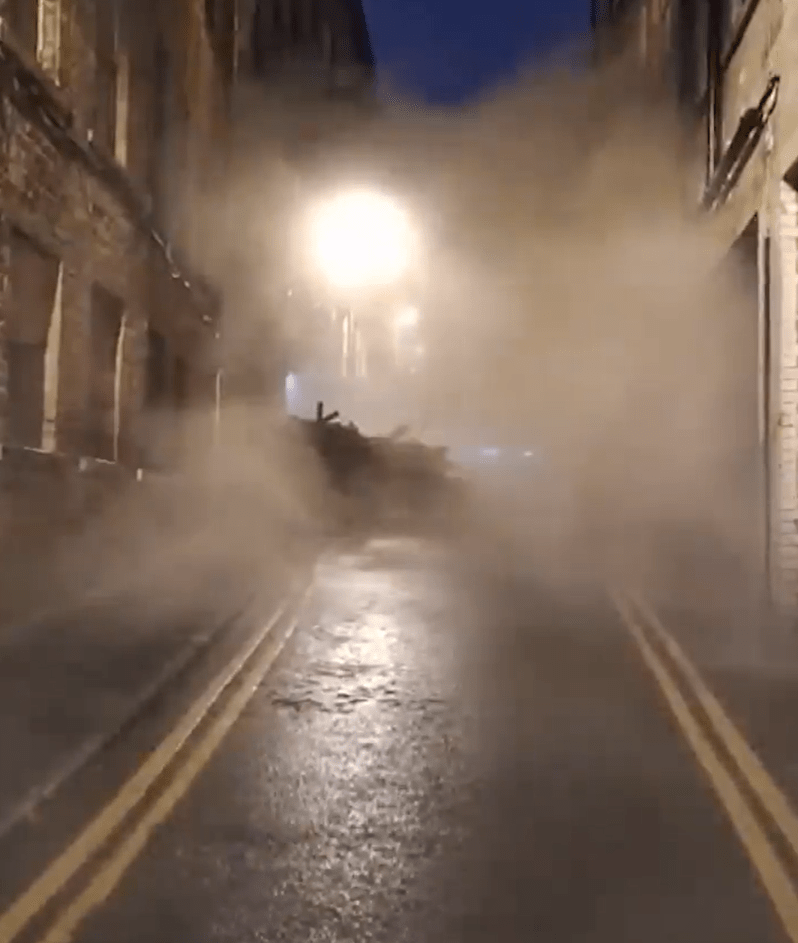 Footage captured by a stunned passer-by, standing just a few feet away from the collapse, shows the crumbling wall as it came down onto Dale Street in the city.