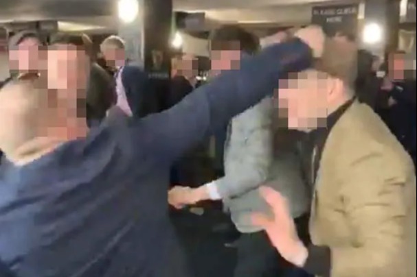 A number of men were seen being restrained by onlookers as they got involved in the ruckus.