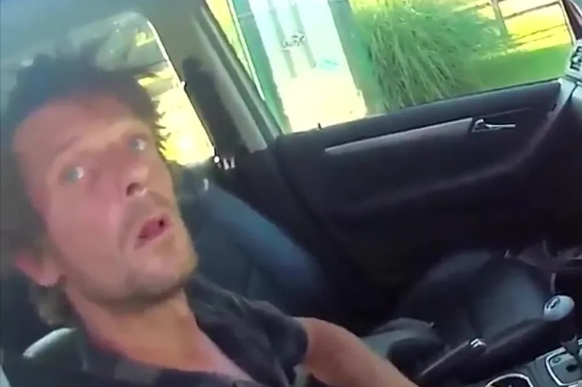 A DRUG-DRIVER has been captured on police bodycam – so out of it he struggled to speak during the arrest.