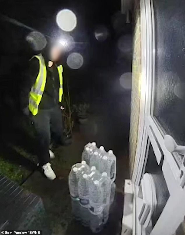 The bizarre Ring doorbell footage was captured outside the home of Sam Purslow, 35, from Tunbridge Wells, who has been without water for over a week due to pressure issues at South East Water.