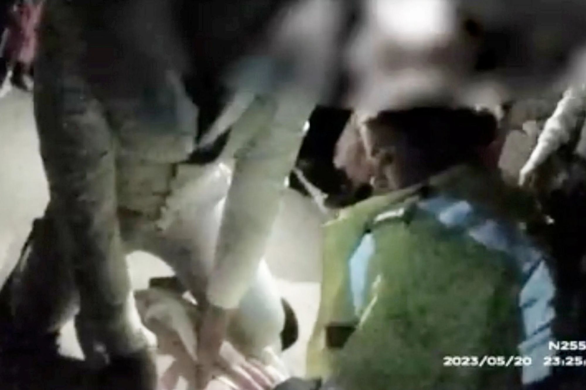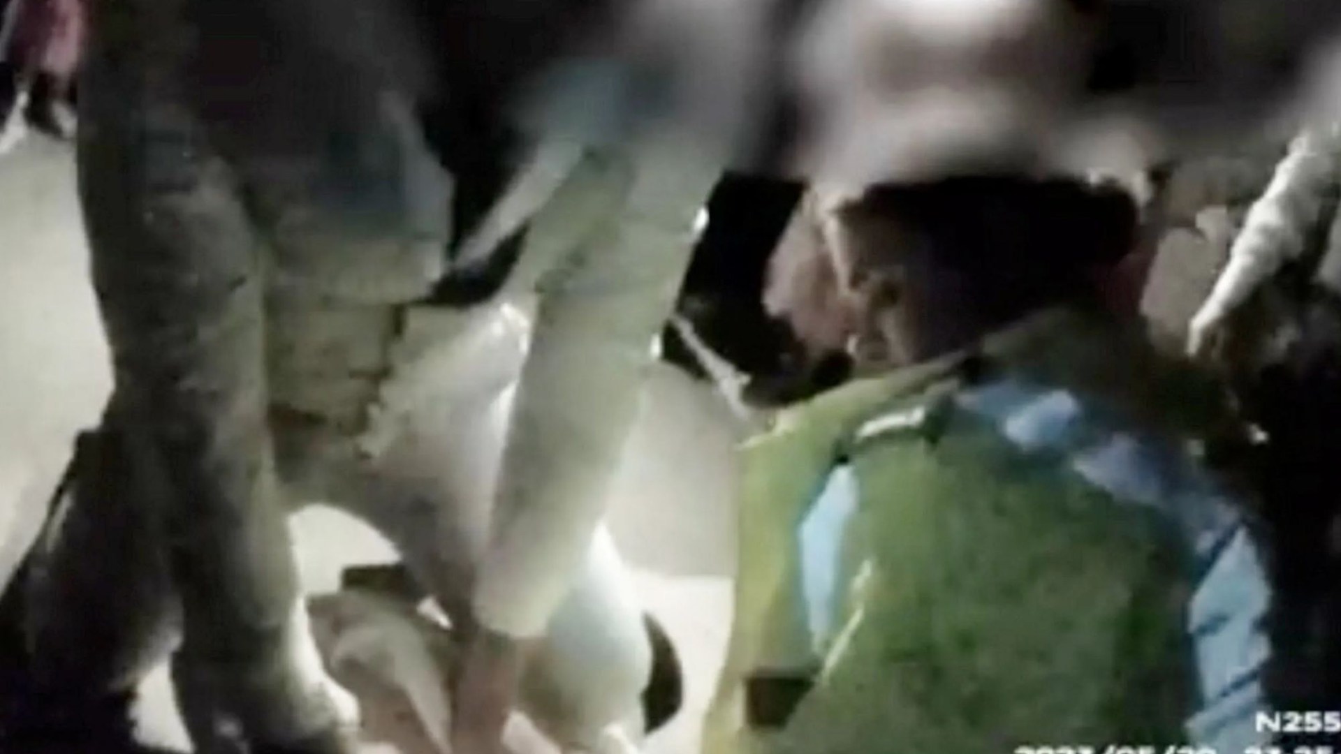 A police officer holding Peasnell down is later heard saying: “Can you get an ambulance as well? I think someone’s finger’s been bitten off.”