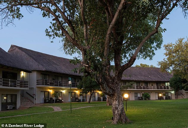 The animal is believed to have crept in last week from the banks of the Zambezi River, which is mere metres away from the four-star hotel (pictured)