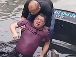 Former soldier Di Shuangcheng, 40, bravely leapt into the water and smashed the sunroof with a rock to free the driver with help from a police officer.
