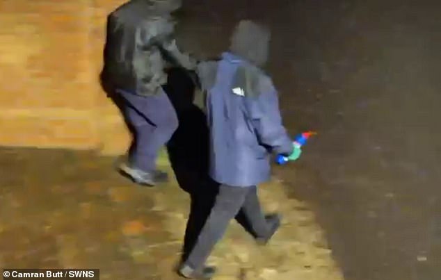 One of the men appeared to be holding an object that Camran believes to be bleach.