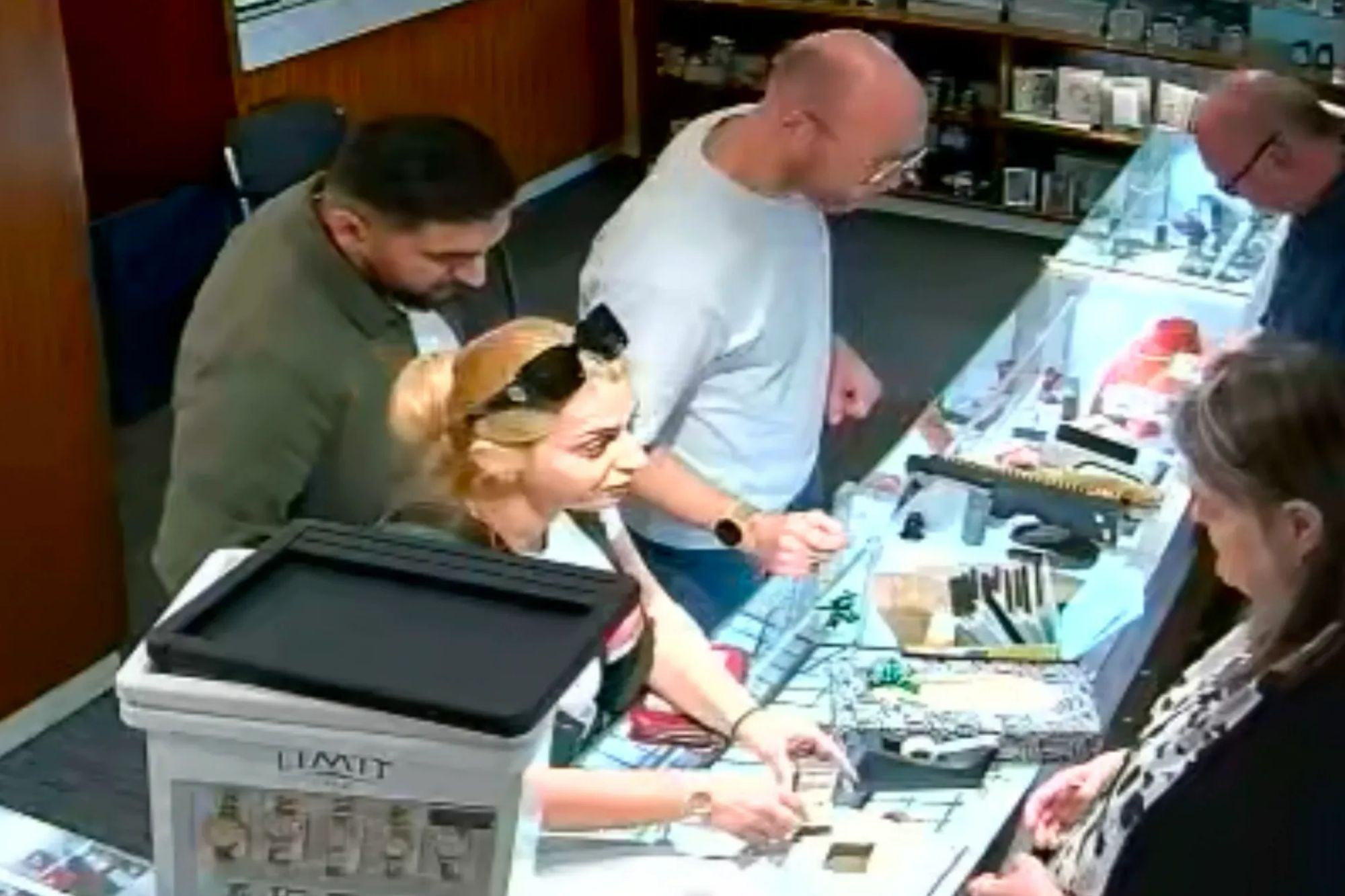 As the jeweller momentarily turns her head, Rostas removes the ring, shuts the box, puts it back in its sleeve and hands it back to her.