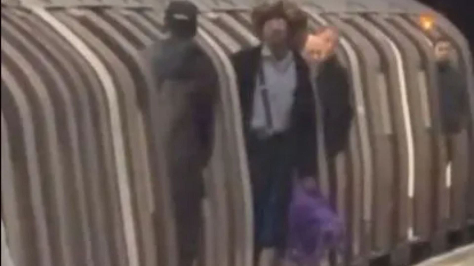 Hilarious moment comedy legend, 66, swings from Tube handrail in daring feat