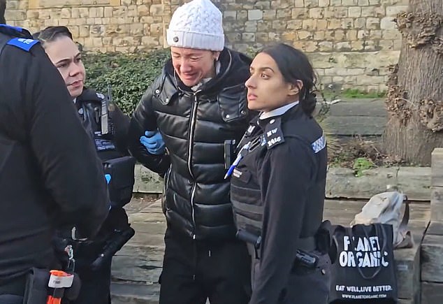 Police were seen searching pockets while a man who was filming the encounter repeatedly challenged the officers over the stop.