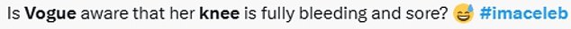 ‘Is Vogue aware that her knee is fully bleeding and sore?’
