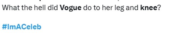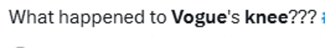 Fans shared their worry over Vogue’s knee – with one saing ‘What has Vogue done to her knee? Looks painful’