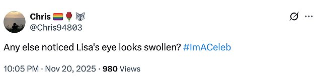 Another asked: ‘Any else noticed Lisa’s eye looks swollen?’;