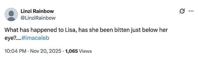 ‘What has happened to Lisa, has she been bitten just below her eye?’, while another added: ‘Guys, I am worried about Lisa, the bugs have really got her.’