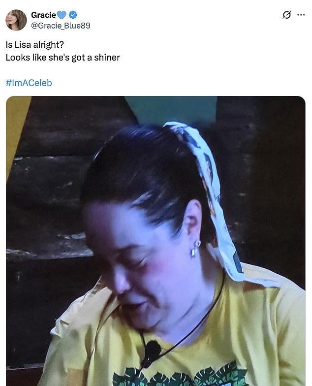While a fifth said: ‘Is Lisa alright? Looks like she’s got a shiner.’