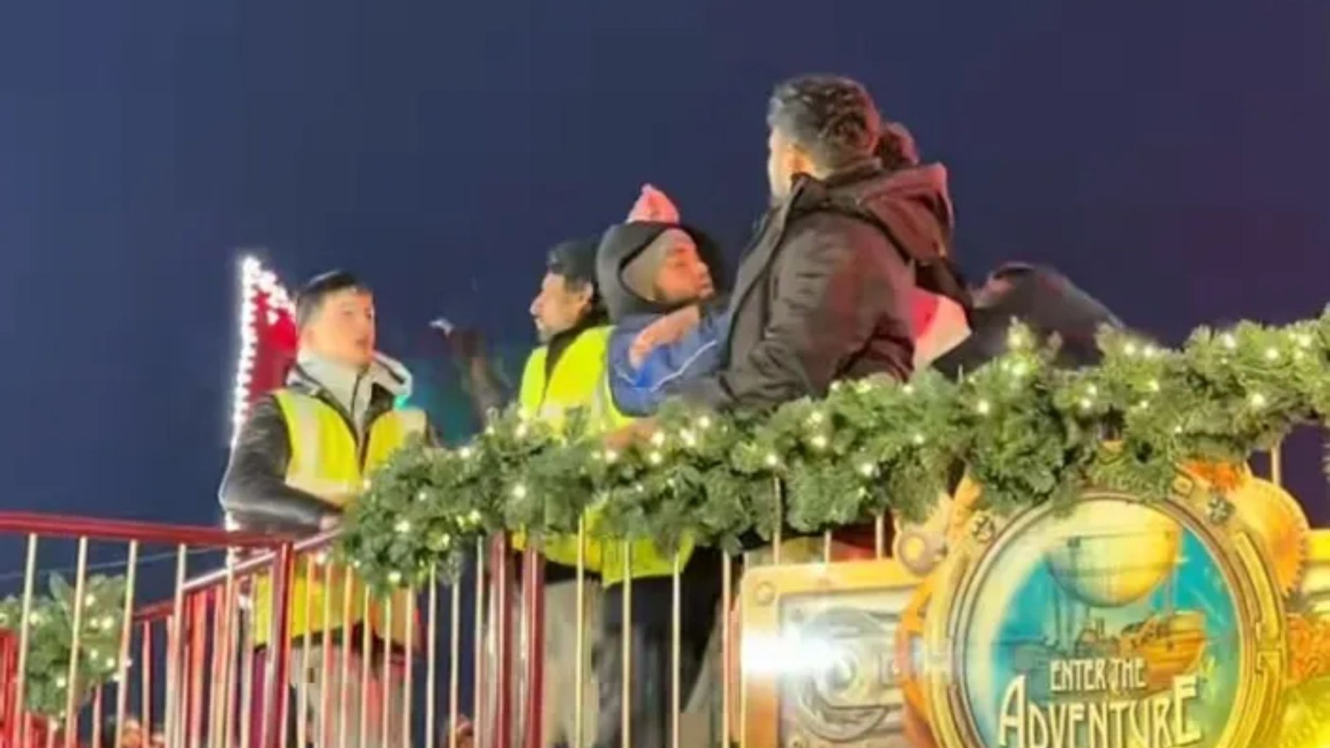 DISTURBING video shows the moment staff in high-visibility jackets began shoving each other during a chaotic altercation with guests on a thrill ride at Winter Wonderland.