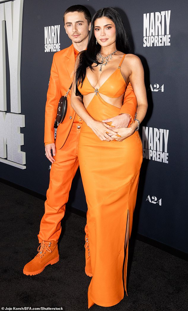 Kylie Jenner, 28, and Timothée Chalamet, 29, made a statement in coordinating orange looks as they brushed aside split rumors at the Marty Supreme premiere in LA earlier this week on Monday (seen above)