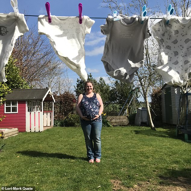 Jacqui Hunter pictured at home among the baby–gros picked out for Olivia before tragedy struck. She died giving birth to Olivia stillborn