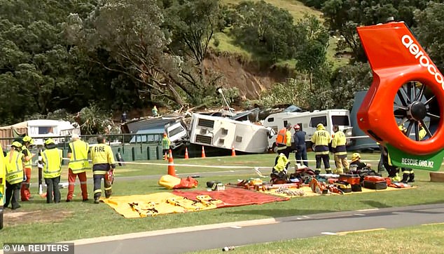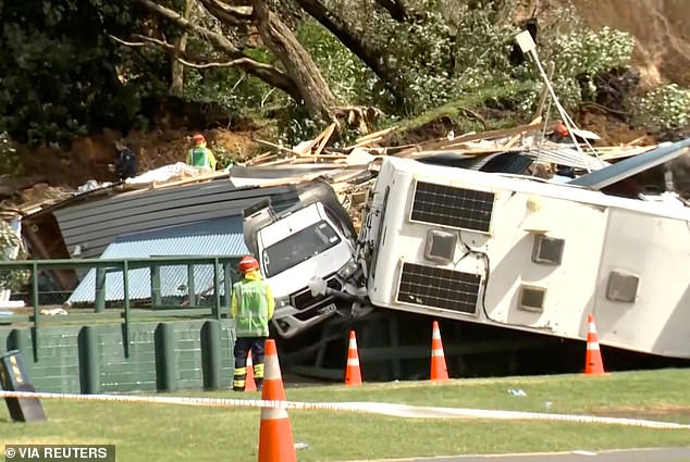 Foreign tourists, including Australians, were among those caught up in the chaos as caravans, tents, vehicles, and toilet amenities were seen in dramatic footage being flattened by the slip, which was caused by record-breaking rainfall in recent days.