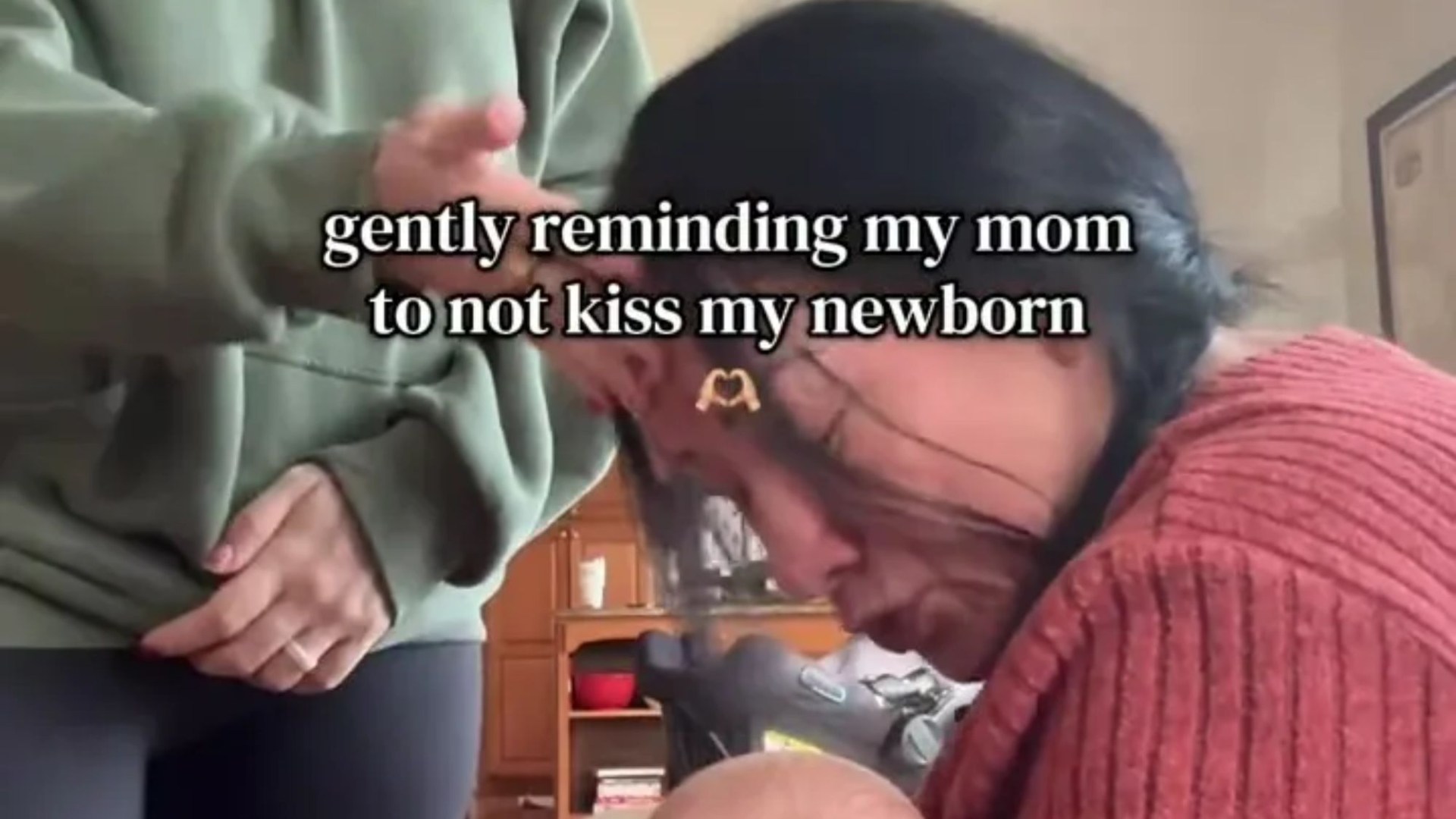 She wrote in the text: “Gently reminding my mom to not kiss my newborn”, adding in the caption: “The word of the day is ‘boundaries.’”