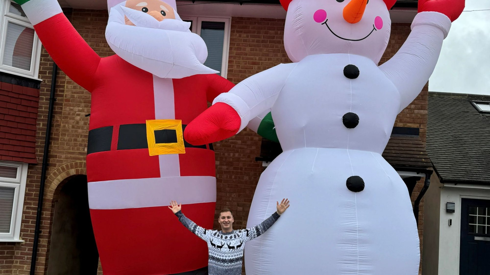 He put it up anyway and says it drew crowds of people keen to get photos, so he added another 20ft inflatable – this time a £179 snowman – on Sunday.