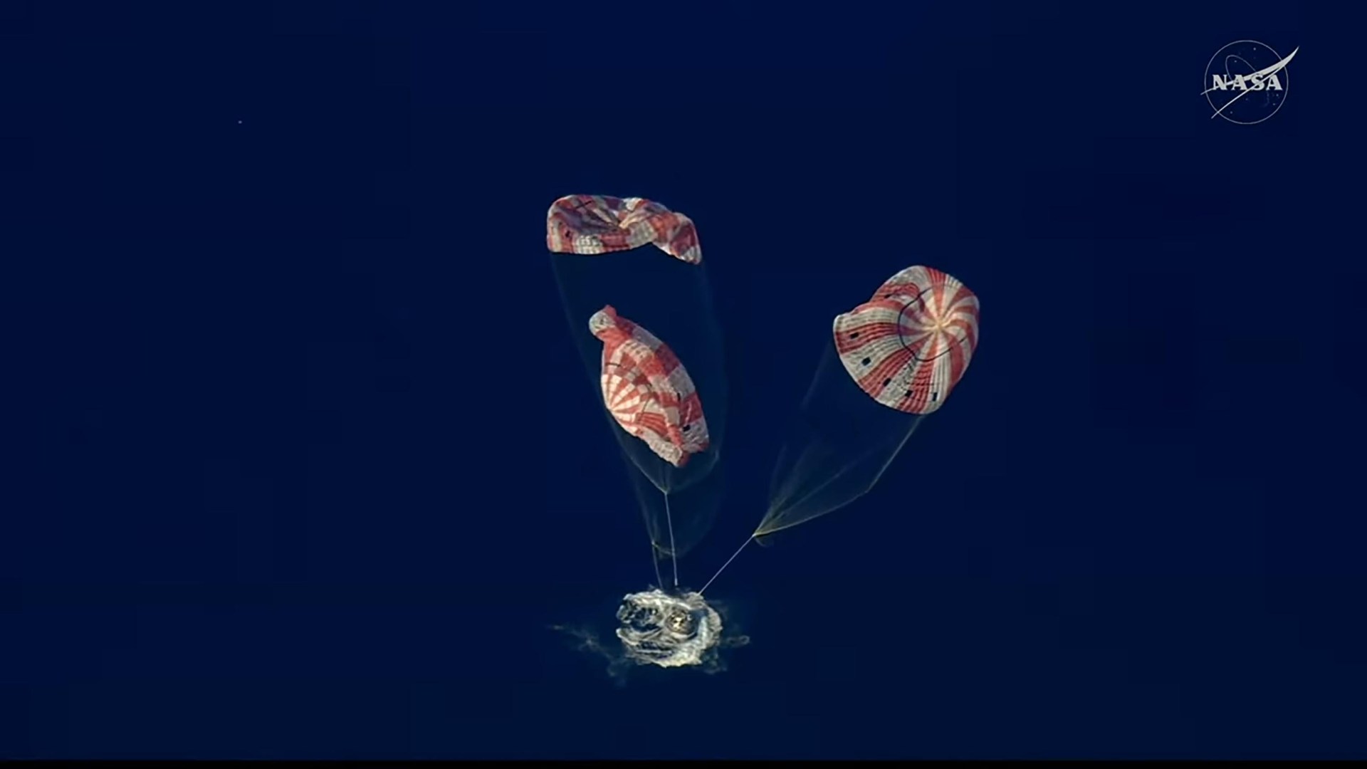 The crew are now floating off the coast of San Diego after an incredible 25,000mph decent after what Nasa called a “bullseye splashdown”.