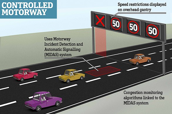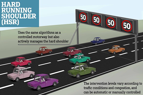 ‘Controlled Motorways’ have a permanent hard shoulder, but gantries which enforce lower speed limits.
