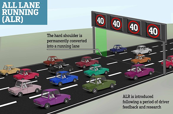 ‘All Lanes Running’ have no hard shoulder but emergency laybys at varying intervals. This is the most common type of ‘smart’ motorway.