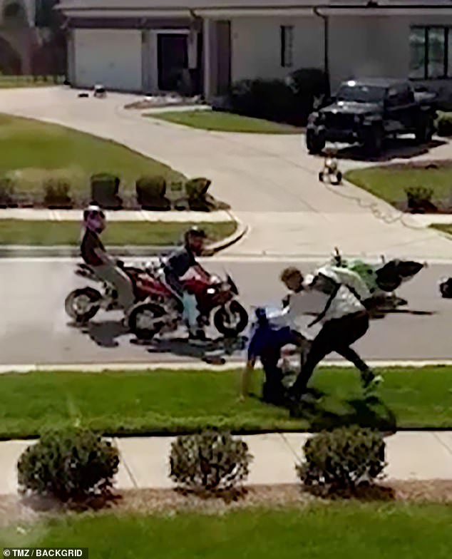 ‘I’ve had such a s**tty day today, I don’t wish the guy any malice or ill will but we just don’t need people riding through neighborhoods like this and I decided I’d take a stand because someone had to,’ he told TMZ.