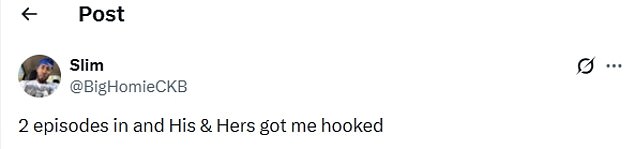 A third commented: ‘2 episodes in and His & Hers got me hooked.’
