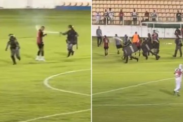 Drunken disorder outside the stadium saw yobs fighting in the street — while one stuck a flare up his bum.