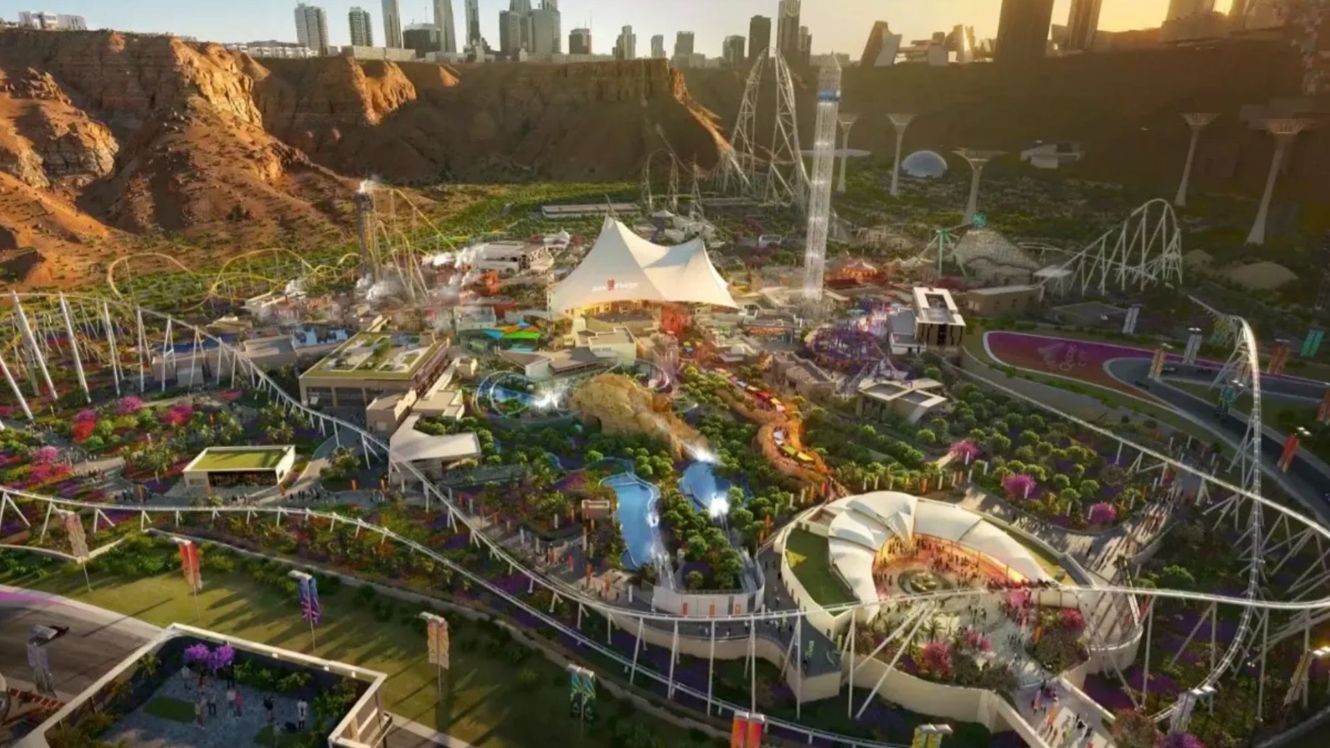 The Six Flags Qiddiya City will have six different lands; Steam Town, City of Thrills, Twilight Gardens, Grand Exposition, Valley of Fortune and Discovery Springs.