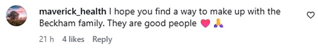 ‘I hope you find a way to make up with the Beckham family. They are good people.’