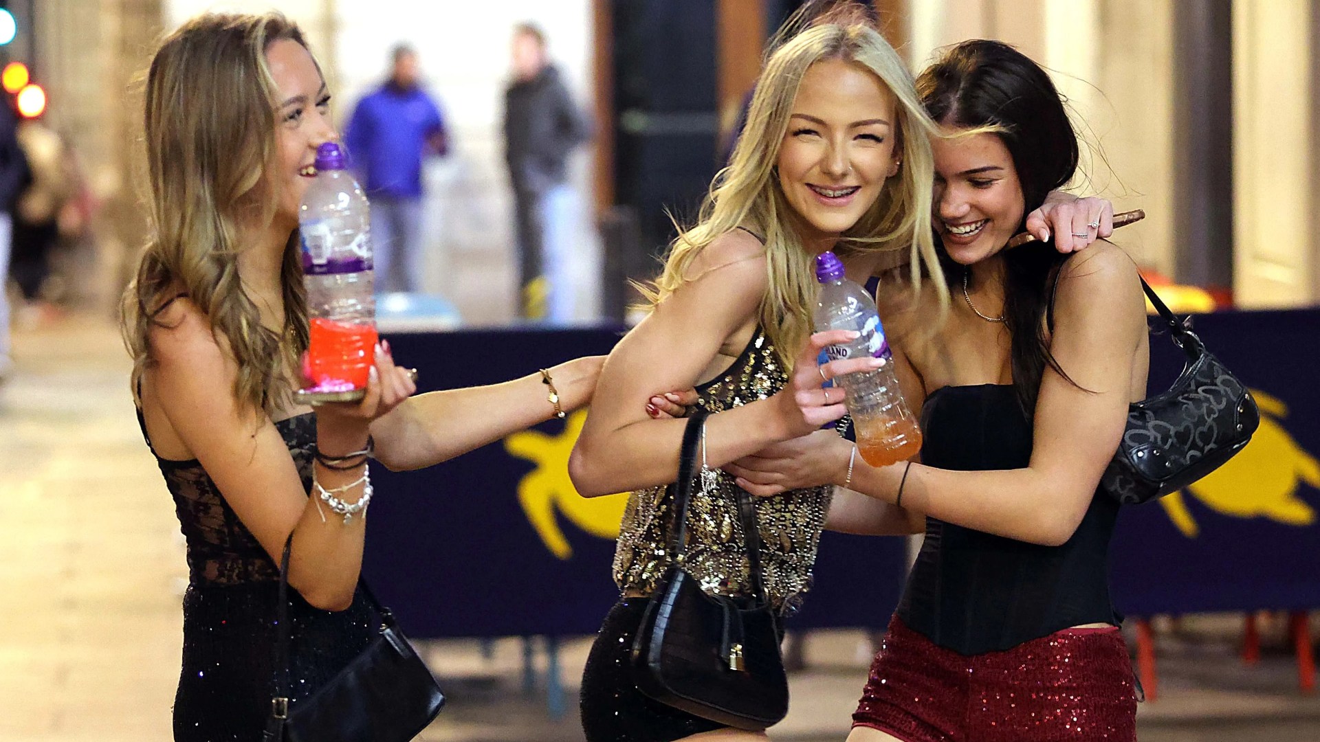 Despite the icy blast, boozy Brits have refused to let the weather dampen their sprits, with city centres packed and partygoers wrapped up against the cold.