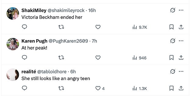 And yet another wrote: ‘She still looks like an angry teen.’