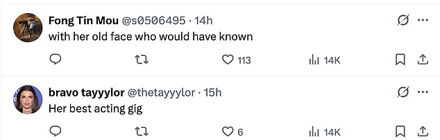 One piled on: ‘Her best acting gig.’