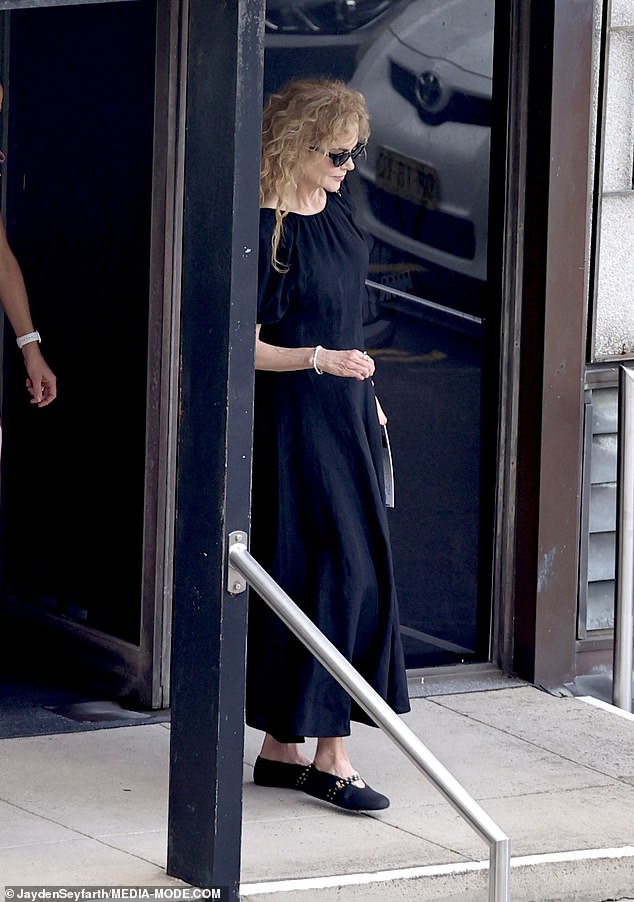 Carrying a black handbag and wearing only simple jewellery, Nicole appeared subdued as she arrived for the service, her expression calm yet reflective.