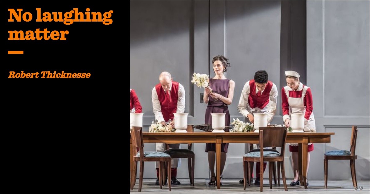 Ms Mijnssen is the sort of director who paints character (actually, makes cheap gestures towards “types”) through the meanest clichés: bad Polinesso smokes and has a shiny suit, uppity Ginevra is haughty with servants, weedy Lurcanio wears a sleeveless Fair Isle jersey, and dad’s in a wheelchair. There is no depth, no hinterland, no subtlety — in fact, no evidence at all of the character that Handel explores so comprehensively through music. The physical direction is hopeless, with none of the psychology portrayed through movement and interaction that good directors do. Frantic, pointless business (usually involving folding or throwing tablecloths around the place) repeats ad nauseam — and feels completely unspontaneous, rehearsed to death.