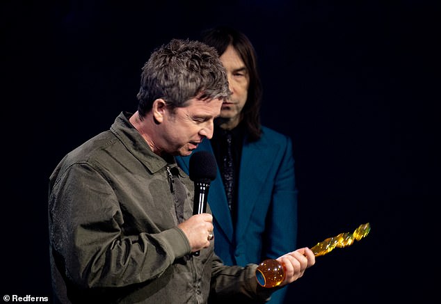 When presented with the award from Bobby Gillespie, lead singer of Primal Scream, Noel first thanked his brother Liam.