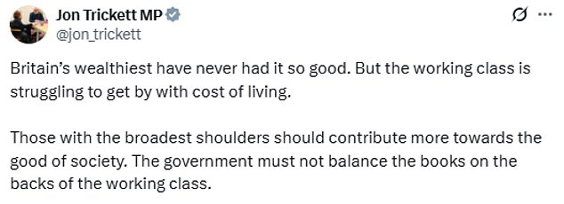 Labour MPs responded to Ms Reeves by insisting she must not try to raise more money from the ‘working class’