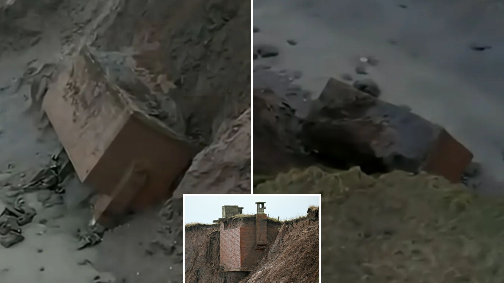 Nuke bunker left teetering on edge of eroded cliff crashes onto beach just days after historian predicted fall