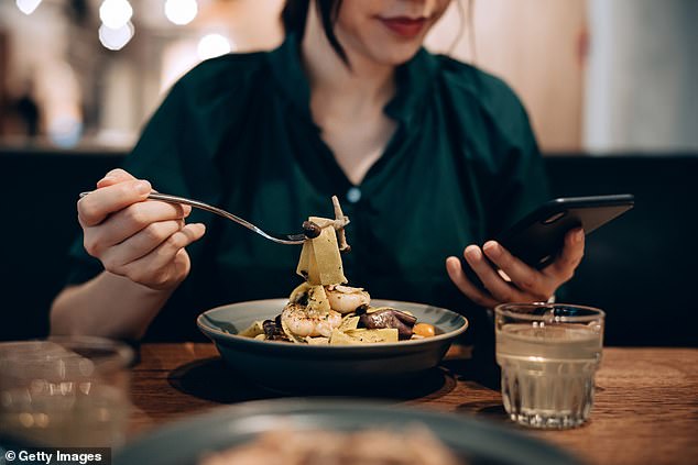 Using a mobile phone at the dinner table is considered to be a modern bad-manner (stock image)