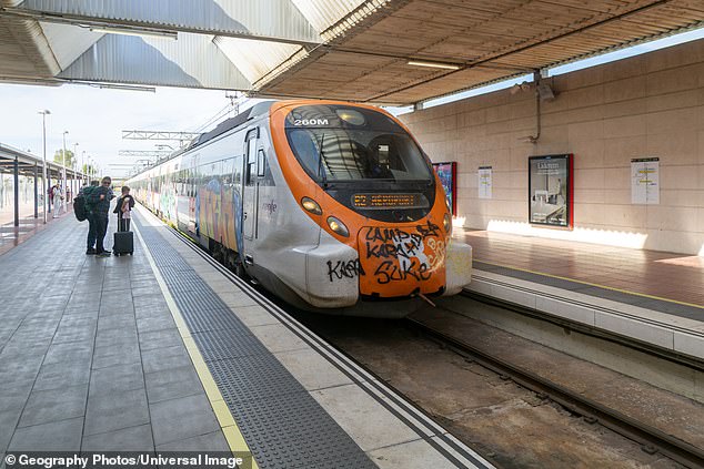 The R4 commuter train, which was between Sant Sadurní d’Anoia and Gelida stations, collided with the wall at 9pm local time (File image of a Renfe Civia commuter train)