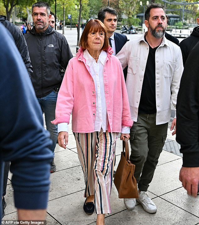 Pictured: Gisele Pelicot arrives at appeal trial for Husamettin Dogan in Nimes with her son Florian Pelicot