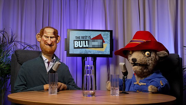 In a sketch for the new YouTube series, named Spitting Image: The Rest Is B*******, Paddington and Prince Harry are cast as podcast co-hosts.